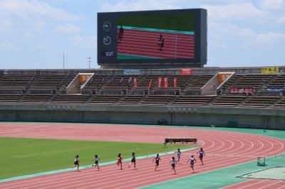 「暑いぞ! 熊谷」の、熊谷スポーツ文化公園陸上競技場で開催された大会に、上沖小学校の児童10名が燃える赤いユニフォームで出場しました。自己新記録や入賞めざして一生懸命がんばる姿、チャレンジする姿って素晴らしいです。