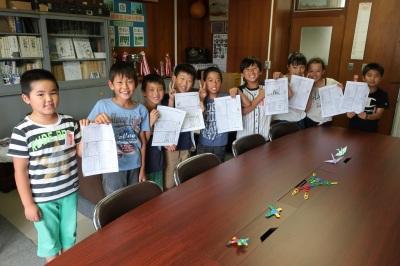 お互いに校歌を発表し合い、良さを認め合い、校歌が大好きな上沖っ子づくりをめざしています。お互いに賞をつけ合ってもいます。たとえば「歌声がきれいだったでしょう」とかです。