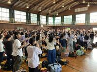 子どもたちの元気なあいさつが学校に響きます。いよいよ林間学校スタートです!