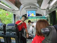 工夫されたバスレクに大盛り上がりです!クラスの様子がよく表れてます!充実した二日間になりそうですね!朝早かったので、目を瞑ってお休みしている子も。