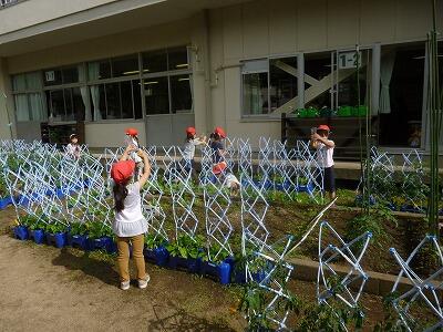 自分たちが育てている、トマトやキュウリの成長の様子を観察したり、ダンゴムシを捕まえて観察したりしました。上沖小には自然がいっぱいあるので、いろいろな生き物や植物をどんどん観察してものしり博士を目指しましょう。