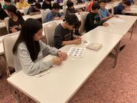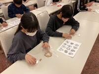 はじめに寄木細工につい説明をしていただいています。作品など、見せていただくごとに「おーっ!」「えーっ!」と歓声があがります!