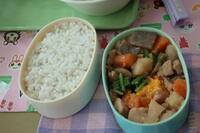 給食のメニューをお弁当箱に詰めると、こんな感じになるのですね。