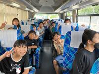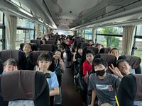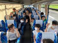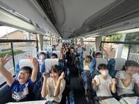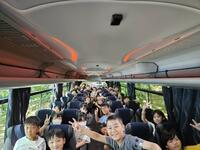 本当なら広い芝生の上でお弁当を食べられたのですが、暑さでバスの中で食べています。これから上沖小学校に帰ります!