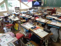 今日は地震が起きた時の身を守る行動を訓練する「シェイクアウト訓練」を行いました。どの学年も放送が流れるとすぐに机の下に頭を隠して身を守る行動をすることができました。