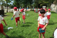 1年生が生活科の学習で虫取りをしています。虫かごや虫取り網のご準備ありがとうございました。秋の虫を探して楽しそうに駆け回っていました。