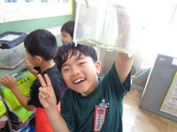 昨日の続きです。虫取りをしていた1年生。その後が気になって教室を訪ねてみました。するといくつも虫かごが並び、中には立派な昆虫たちが!「ぼくがとったんだよ!」どんな風にとったのか様子をくわしく教えてくれました。大切に飼ってくださいね!