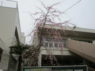 校庭では、三春滝桜やハナモモ、チューリップが色鮮やかに咲き始めました。