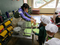 担任とともに、栄養教諭も授業に参加して家庭科の授業を教えています。