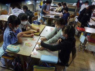 3年生は「さいたま郷土かるた」を並べて、春日部のよさや伝統などを確認し、かるたに触れる授業を行っていました。