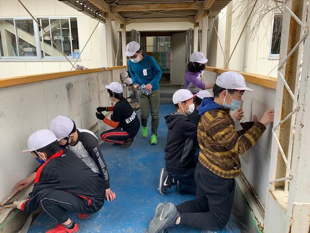 6年生が、ありがとう活動を行いました。その活動の一つに、渡り廊下のペンキ塗りがありました。汚れを落としてから、黄色や白などのペンキをはけを使って、きれいに塗ってくれました。先生方や在校生のみんなは、ここを通るたびに6年生を思い出すことでしょう。