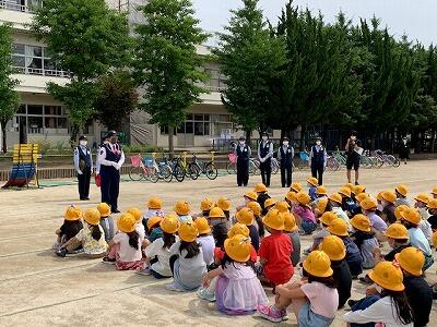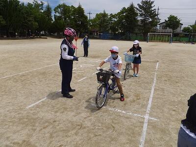 交通事故等が増えている今、正しい歩き方や正しい自転車の乗り方を教えていただき、子どもたちはとても意識が高まりました。交通指導員の方々、市の職員の皆さんご指導ありがとうございました。
