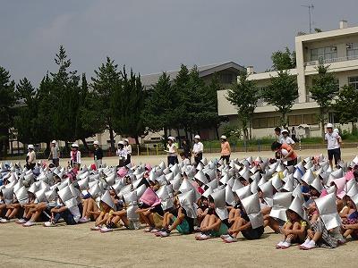 災害から命を守る訓練を2つ行いました。はじめは避難訓練。1学期よりも整然と早く避難できました。
