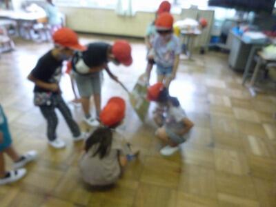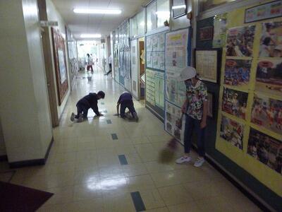 上沖小の伝統である「もくもく掃除」で、無言でもくもく清掃を一生懸命行いました。