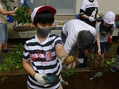 678組さんが、じゃがいもの収穫を行いました。大きなじゃがいもがいっぱい採れました。