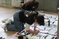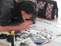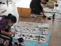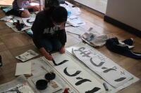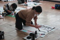 墨のよい香りに包まれた中、こつこつと練習してきた成果を発揮して、まさに「一字入魂」で取り組んでいました。