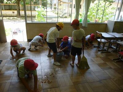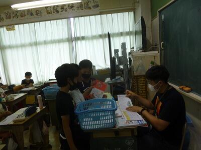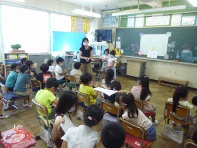 歌やクイズ、出し物など、クラスみんなで考えた学級会での計画を短い時間で準備し、楽しく盛り上がって楽しみました。お楽しみ会の後は、一学期の汚れをしっかり落とすためにクラスみんなで大掃除を行っていました。机やいすの細かいほこりをとったり、教室の普段掃除しないところをしっかりと水拭きしたりしました。きれいにして、新しい気持ちで2学期を迎えたいですね。