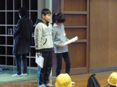 3年生代表児からは、2学期にがんばったこと(漢字・持久走・あいさつ)の発表がありました。堂々とした発表に大きな拍手がわきました。