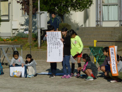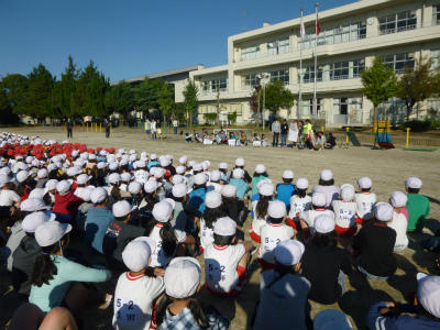 今日は音楽朝会がありました。全体で「まっかな秋」を歌った後、1年生が