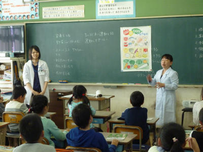 と養護教諭がゲストティーチャーとして授業に加わりました。