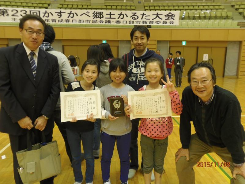 11月8日(日)第23回かすかべ郷土かるた大会で、6年生のSMUチームが2連覇を達成しました。さらに、4年生の上沖SAMチームが3位、6年生の上沖おっとリーズが8位となりました。おめでとうございます。また、今年は、22のチームとファミリー1チームが参加し、大会まで一生懸命に練習をしてきました。みんな、がんばりました。