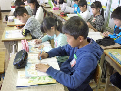 3時間目に、7組に子どもたちが見学にきました。聴きたいことや見たことをプリントに書きました。明日は、電車で合同学習に「東武動物公園」に行きます。よい思い出をつくってくださいね。