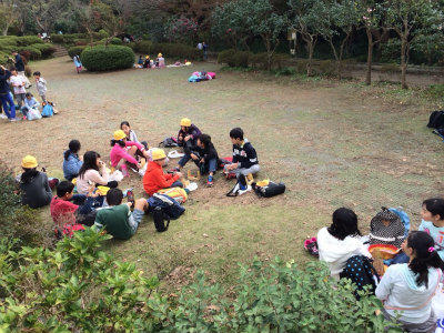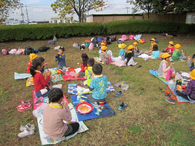 1年生が、一ノ割り公園へ校外学習へ行きました。落ち葉や木の実を集めたり、班のお友だちとおやつを食べたりと楽しい時間を過ごしました。集めた落ち葉や木の実で、絵を作ります。とても楽しみです。