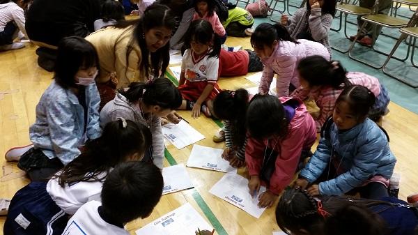 今日は、大沼体育館で春日部市教育委員会主催の「カスカベ・インターナショナル・フレンドシップ・デイ」という行事があり、上沖小からも多くの児童が参加しました。ALTや他の学校の児童生徒とふれあいながら、楽しく英語を学んだり、色々な国々の文化を知ったりと、楽しい時間を過ごしました。