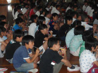 「早ね、早おき、朝ごはん、朝ウンチ」をテーマに、おなか(腸)の働きの大切さ、いいウンチを出すための生活習慣について学びました。子供たちは腸の長さにびっくり!!