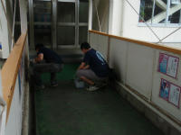 今回は、渡り廊下のペンキ塗りです。子供たちも参加し、みるみるうちにきれいに塗装されました。プレハブ倉庫の整理も行っていただきありがとうございました。