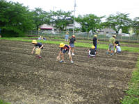 4年生と7・8組の子供たちが、一ノ割上根公園に行ってコスモスの種まきをしてきました。毎年、上沖小の子供たちが種まきをします。種をまく子、板を使って土をかける子、二人組での共同作業です。約2,400平方メートルの畑に一生懸命種まきをしました。10月には、様々な色のコスモスの花が咲くのを楽しみに待っています。