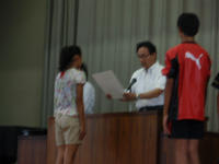 今日は全校朝会の前に、7月3日(日)に熊谷スポーツ文化公園陸上競技場で行われた県民総合体育大会の表彰がありました。10名の児童が参加し4名が入賞と嬉しい結果でした。