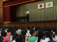 終業式では、校長先生から「な・つ・や・す・み」の約束についてお話がありました。