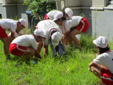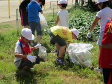 大変暑い中での作業となりました。子供たちは、一所懸命に草を抜いたり、落ち葉を集めたりたたくさんの汗を流しながら働きました。明日から気持ちよく運動会の練習や様々な活動ができます。上沖小のみなさん、ご苦労様でした。