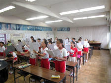 業前には、学年ごとに教室に集まり初めての応援練習を行いました。高学年の応援団のみなさんが、各教室をまわり教えてくれました。また、昼休みには、1・2年生の代表選手によるリレーの練習が行われました。バトンを上手につなぎ、力いっぱい走り切りました。どのチームが勝利するか楽しみです。