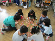 今日ののびのびタイムは、ペア遊びの日です。校庭では青空の下、ジャングルジムでの鬼遊びやだるまさんが転んだ、ドッジバールやバスケットボールを楽しんでいました。室内では、かすかべ郷土かるたやトランプ、椅子取りゲームや手押し相撲などを楽しんでいました。手作りのすごろくで遊ぶグループもいました。回を重ねるごとに関わりが深まっているようです。10月31日は、ペア学年での「青空ランチ」を計画しています。