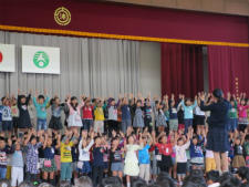 今月の歌は「ありがとう」です。♪ありがとー♪ ありーがとう♪ の部分では、高学年の美しい高音が下級生を引っ張り、約900名の歌声が体育館に響き渡りました。