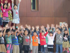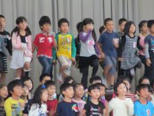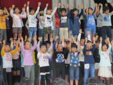 2年生は「幸せのリズム」と「グー チョキ パー」を発表しました。リズムに乗って軽快歌った「幸せのリズム」は、高学年も楽しめたようで自然と手拍子が起こりました。「グー チョキ パー」ボイアンサンブルで発表しました。元気で楽しパフォーマンスに、1年生が驚いていました。すばらしい2年生の発表でした。