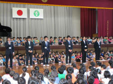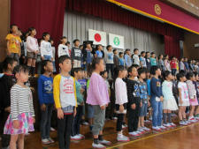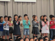 これまで、授業時間だけでなく、業前活動前、昼休み、帰りの会等で練習を重ねてきました。友達と励まし合いながらいつも笑顔で練習に取り組んでいました。そんな子供たちも、26日の激励会でとても緊張していたようです。いつもの笑顔はありませんでしたが、のびのびとした声、歌詞に込めた思いは、全校児童や先生方に感動をくれました。今日もこれまでの練習の成果をしっかりと発揮できたようです。明日の学校公開日にも体育館で披露します!