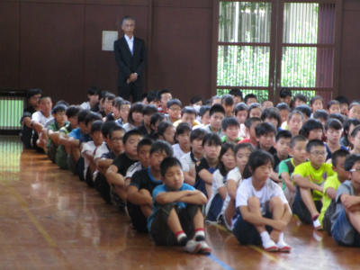校長先生からは、「チーム上沖」で頑張ることについて2つのお話しがありました。