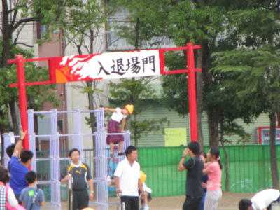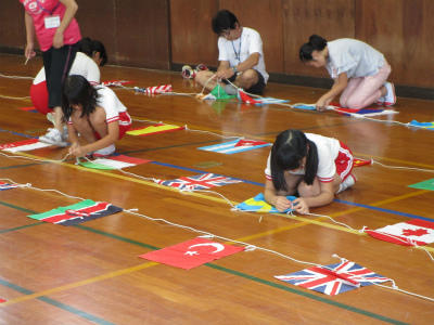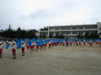 昨日は、先生方で入退場門を設置しました。今日は、係児童が万国旗の準備をしてくれました。