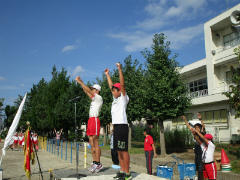 9月4日(月)から、共栄大学生4名の教育実習が始まりました。全体練習前に、実習生から挨拶がありました。