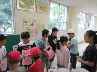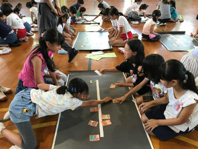 ペア学年で一緒にグループを作り、教室で遊びました。あいにくの雨の影響で校庭が使えませんでしたが、子供たちは狭い教室で、カードゲームをしたり、危なくない程度に体を動かすゲームをしたり、とっても楽しそうでした。