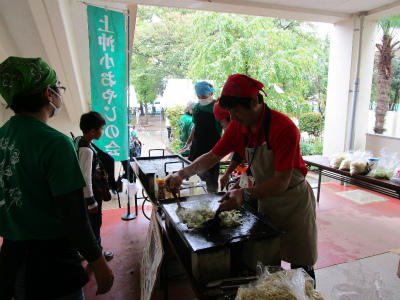 今日は「親子まつり」です。霧雨が降る中での開催でしたが、多くの子供たち、保護者の皆様、そして地域の皆様に参加いただき、にぎやかなお祭りとなりました。今年度も、上沖小校長先生、大沼中校長先生は、おやじおの会のみなさんと焼きそばコーナーで腕を振るいました。