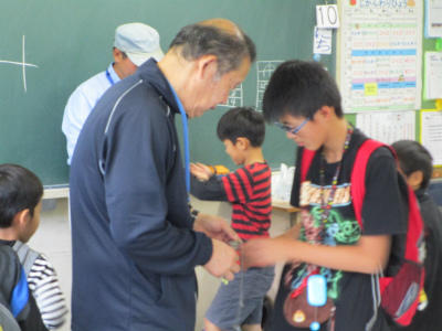 福祉委員会では、事前に昼の放送で呼びかけました。1年生の子供たちもたくさん協力をしてくれました。赤い羽根をもらいとてもうれしそうでした。