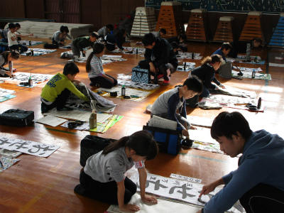本日、5・6年生が体育館で書きぞめ競書会を行いました。