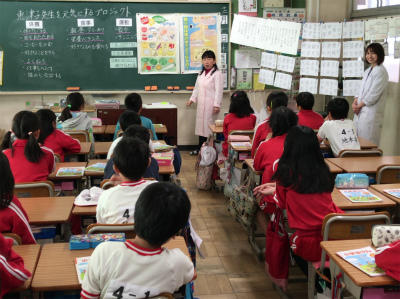 上沖小では、このように栄養教諭や養護教諭が積極的に授業に参加し、それぞれの専門性を生かしてよりよい授業づくりをめざしています。