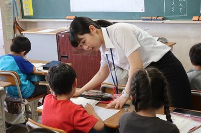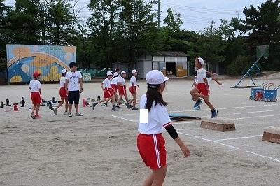 埼玉県教員養成セミナーの受講生が、6年1組で実習を行っています。卒業後は、教員を目指して勉強をしている学生です。今日は、体育の授業を行い、一生懸命がんばっています。