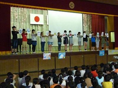今日の音楽朝会では「いつだって!」を全校で歌いました。4年生の教科書の巻末に載っている歌です。全校で、しっかりと声を出し、心をそろえて歌うことができました。音楽委員の演奏もたいへん上手でした。これからもたくさん歌を歌って、歌声の響きわたる学校をめざしてまいります。