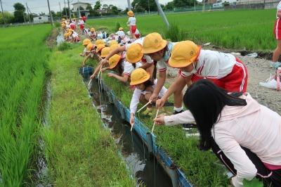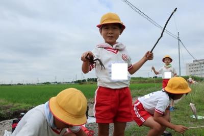 2年生が学校近くの田んぼでざりがにつりをしました。家から持ってきたイカをえさにして釣りました。ざりがにが釣れるたびに、子供たちから大きな歓声があがりました!
